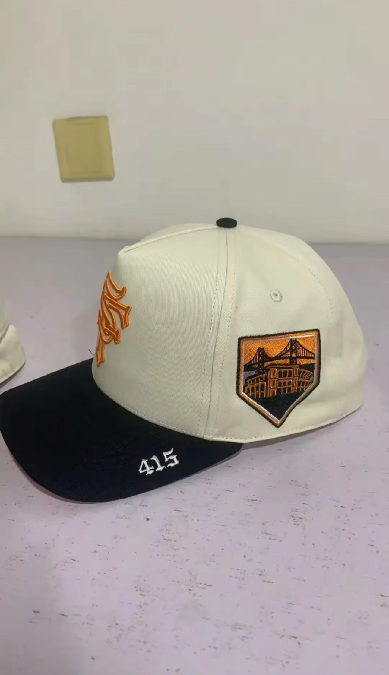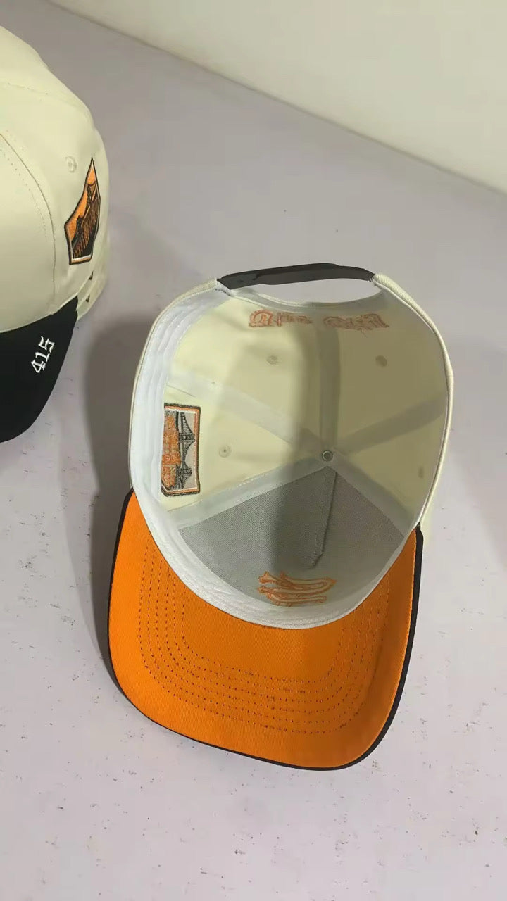 Rep the 415 in style with this exclusive SF hat, designed to capture the spirit of the city. Featuring a bold embroidered SF monogram in vibrant orange on a cream crown, paired with a sleek black brim stitched with “415,” this cap makes a statement from every angle.